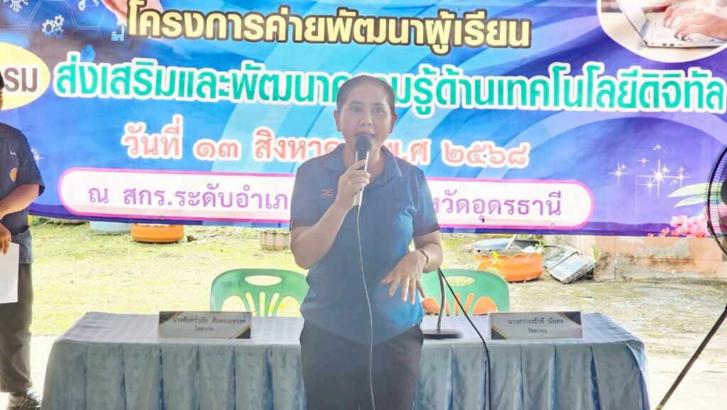 กิจกรรมส่งเสริมและพัฒนาความรู้ด้านเทคโนโลยีดีดีจิทัล โดยมี นางสาวกชกร พรมมาโอน ครูชำนาญการ เป็นประธานในพิธีเปิดและมีนายซินกร คะอังกุ ผู้อำนวยการ สกร.ประจำจังหวัดอุดรธานี นิเทศ ตรวจเยี่ยมและให้กำลังใจ